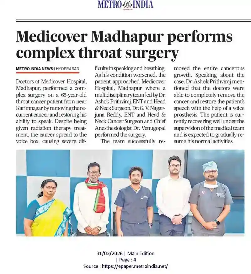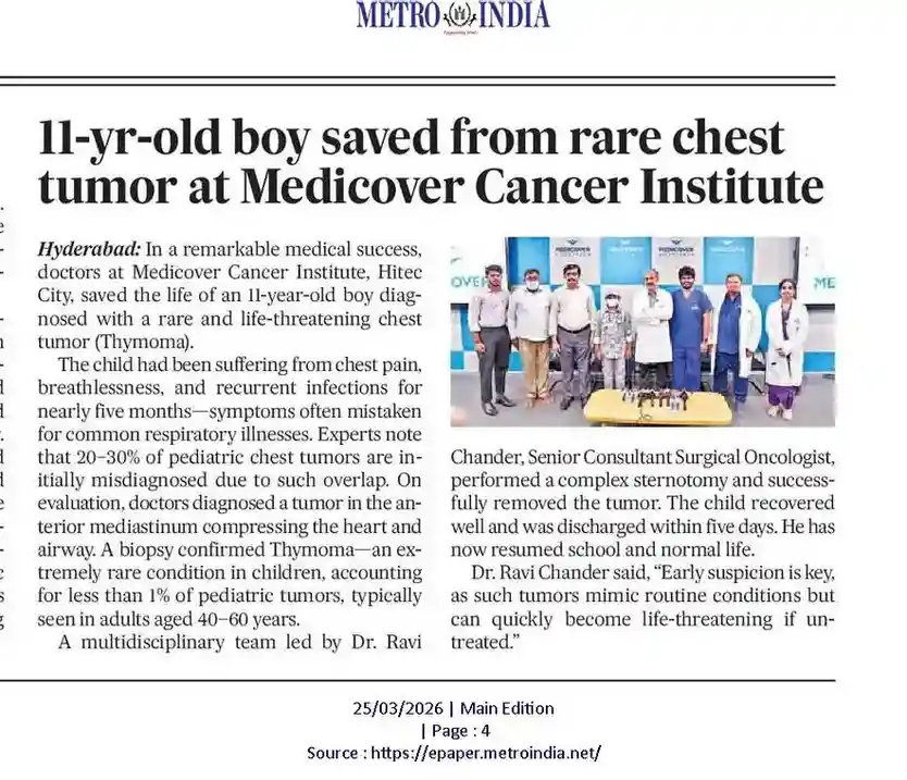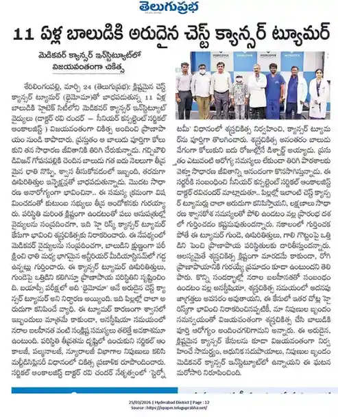 Saved 11-Year-Old Boy From Rare Chest Tumor - Cancer Institute, Hitech City