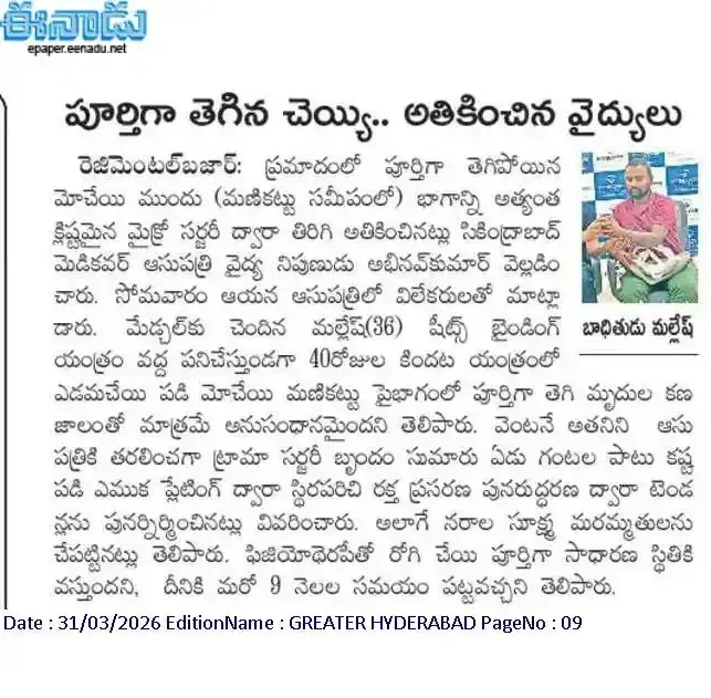 Successful Amputated Forearm Replantation | Limb - Medicover Secunderabad